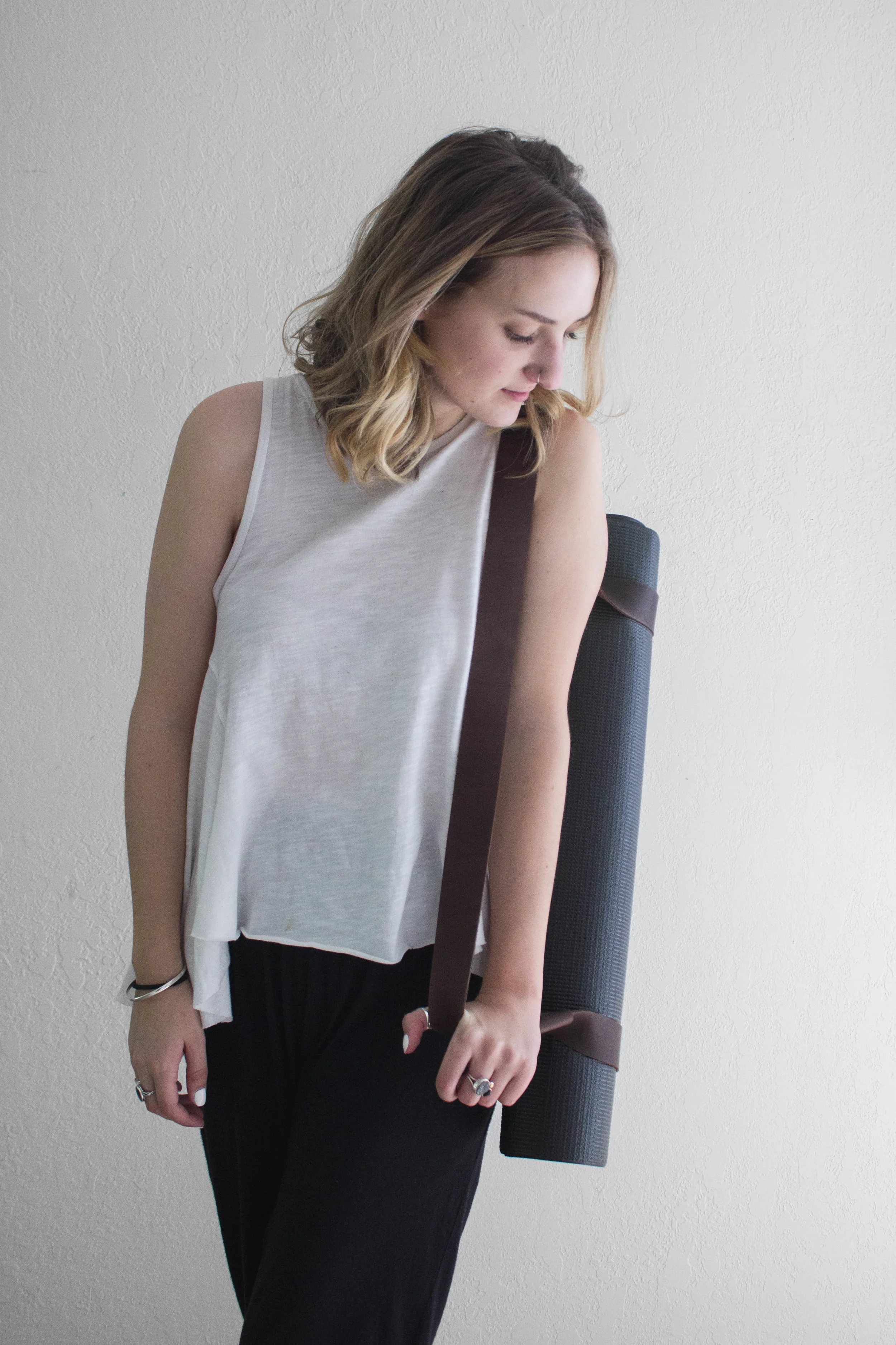 In preparation for the big event, I decided I needed to get prepared. While to some people that might mean working on their flexibility or core strength or something, to me it meant making something so I can fake the part! Enter the DIY yoga mat strap carrier thing!